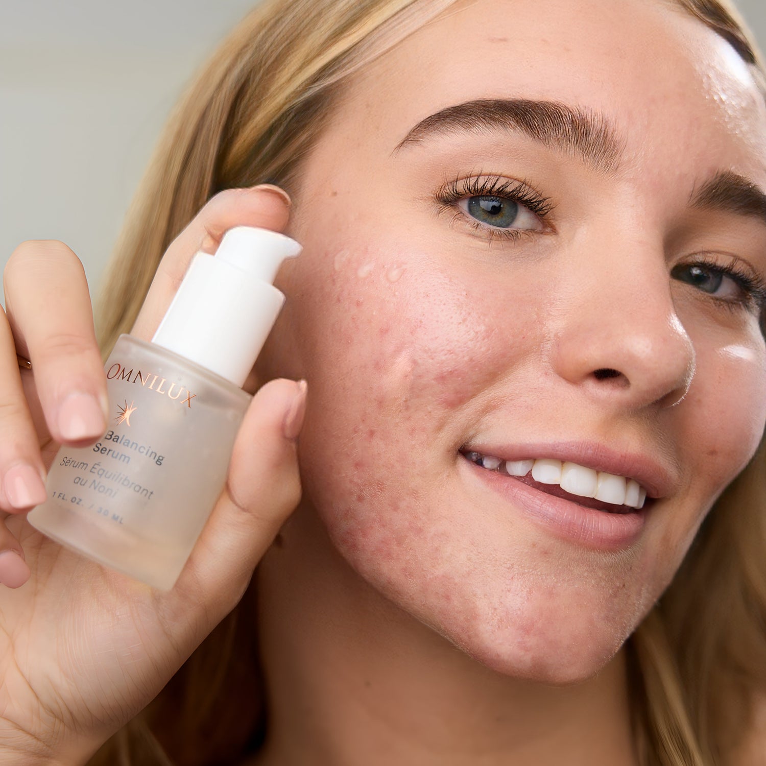 • Dispense a small amount of serum into hands and gently massage on to face.